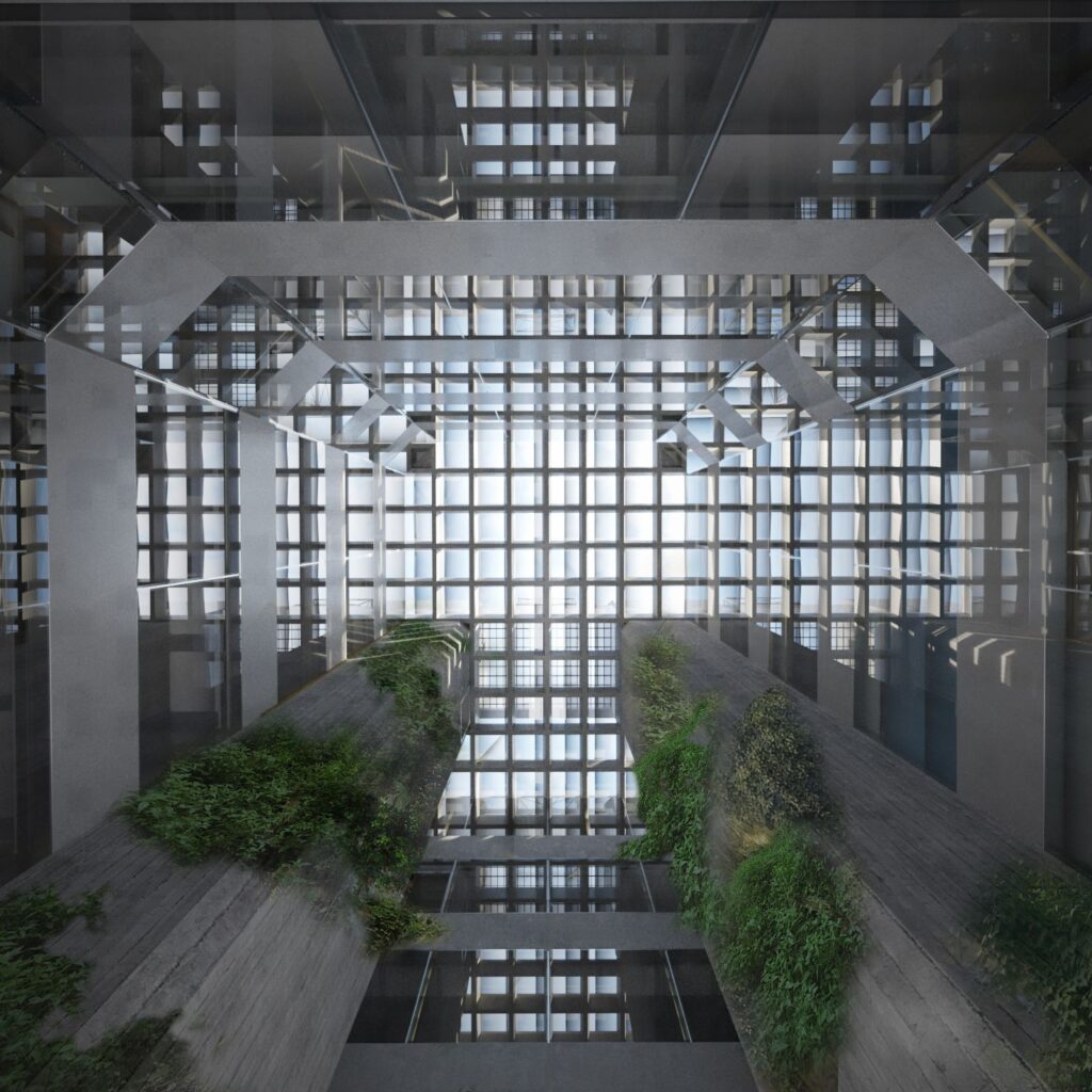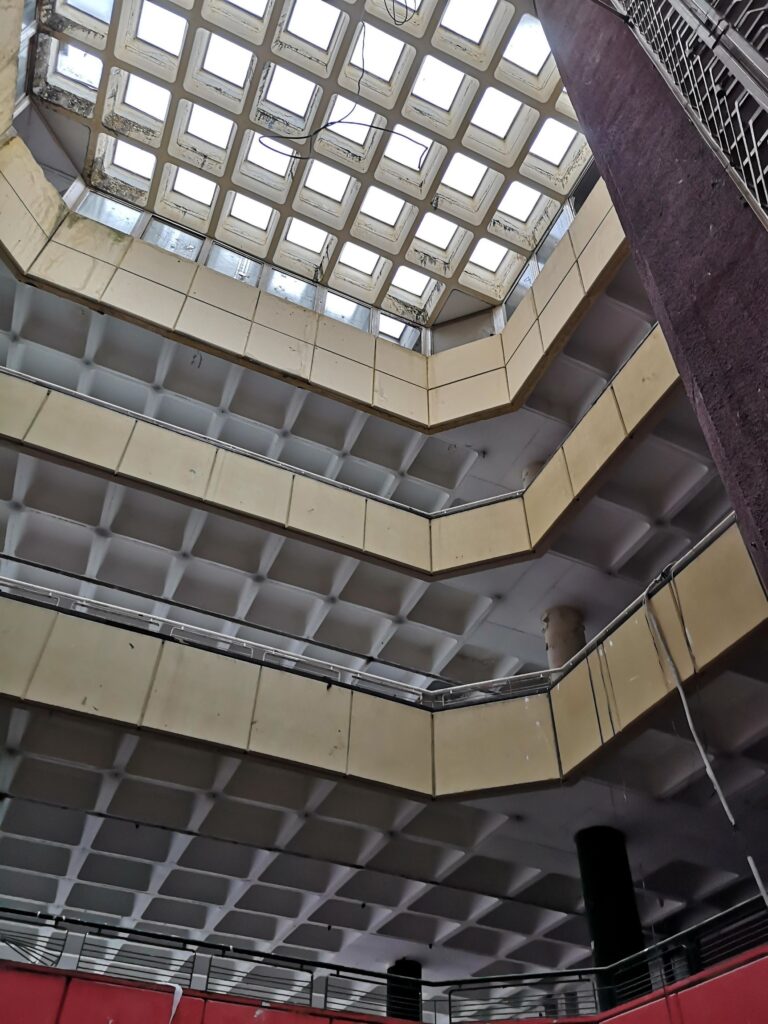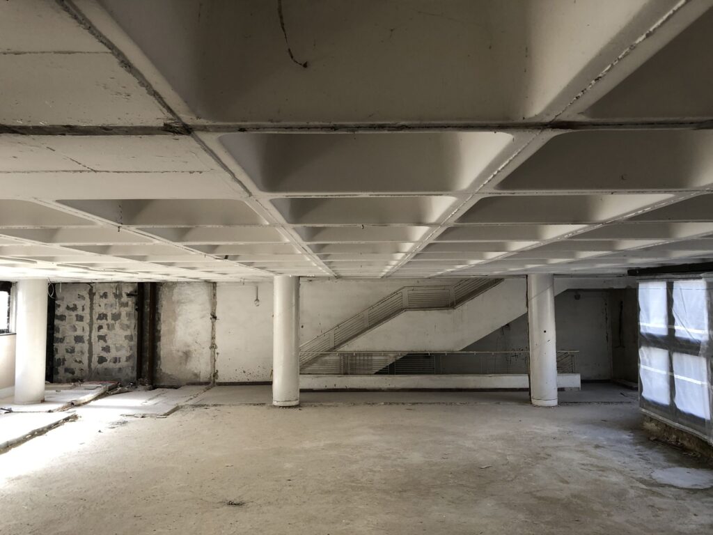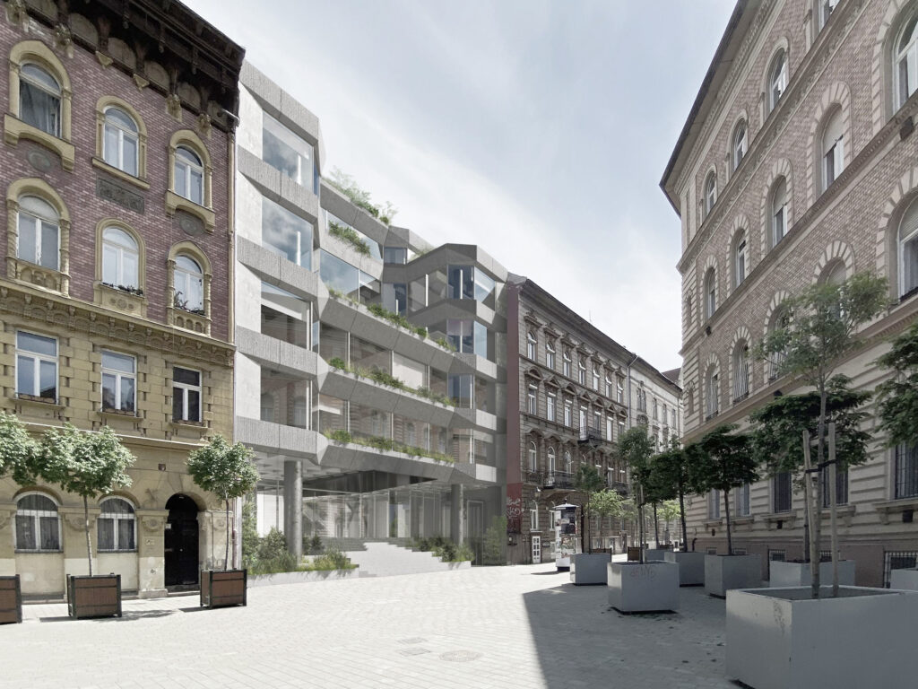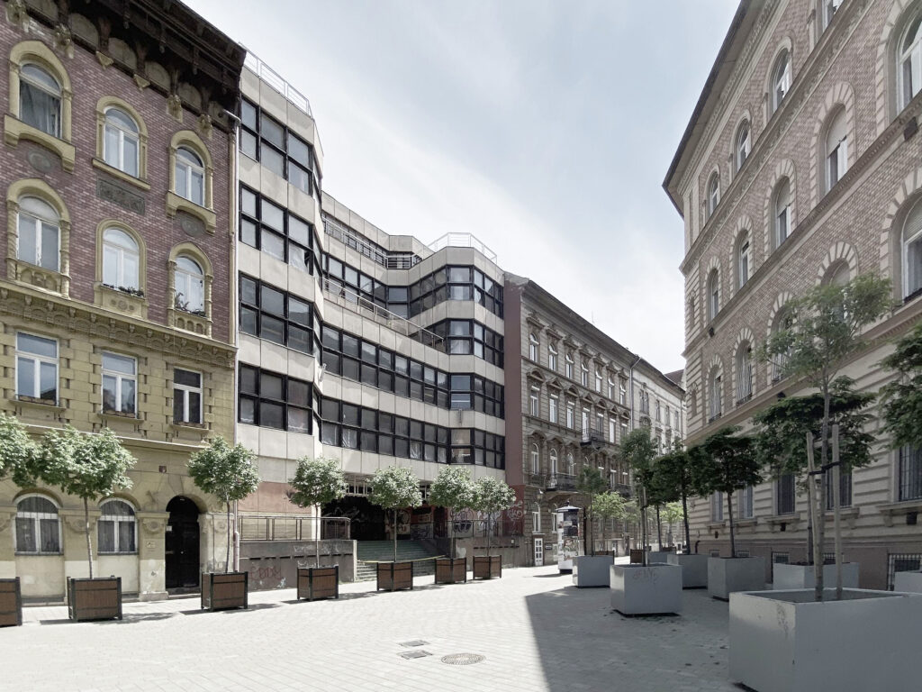 Egy meglévő épület áttervezése számos kérdést felvet. Hogyan viszonyuljunk a modern, brutalista örökséghez a pesti belvárosban? Hogyan alakítsunk át egy rengeteg személyes emléket felidéző egykori kulturális központot új funkcióra? Az Építtető eredeti szándékának is megfelelően koherens, a régit megidéző, az újat befogadó épületet alkottunk. Az áttervezés során egyeztettünk az eredeti tervezővel, és műemlékes szakemberrel is.